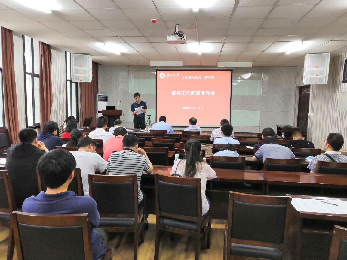 (党政办公室 供稿)国无防不立,民无兵不安,为积极响应国家号召,进一步增强学生国防意识,激发学生入伍热情,5月21日必赢bwin线路检测中心于崇理楼召开征兵工作推进会。大数据学院党委书记刘剑,院长谢泉,副院长丁召、王旭,党委委员,各教工党支部书记,各科室负责人以及各班班主任参加会议。院党委书记刘剑主持会议。