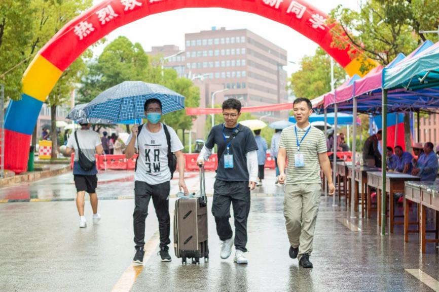 由于疫情影响,新生只能单独进入校园办理报到手续。在没有家人的陪伴下,必赢bwin官网迎新工作队员在校车停靠处设点,帮助新生提拿行李。“看着新生们独自一人拿着行李前来报到,作为党员干部,帮助他们是我应尽的责任。”研究生党支部书记卫星奇手中拿着新生的包裹说道。
