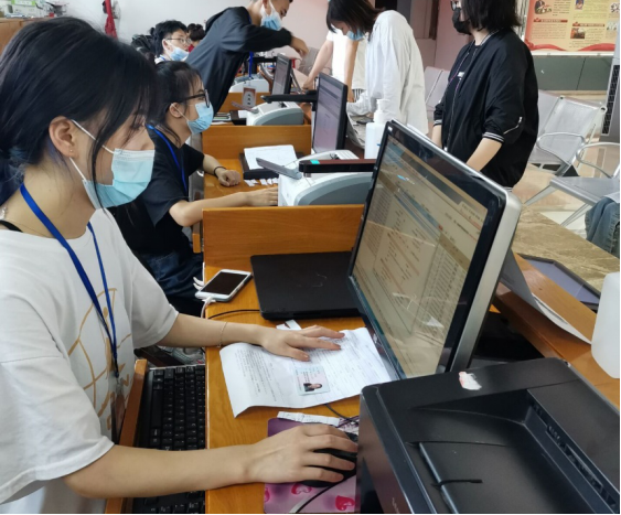 志愿服务当天,董雪与其他志愿者一起组织学生及家长排队;引导学生在等候区等待,并按照号码顺序进入业务办理区办理业务;协助工作人员检查资料、打印合同和受理证明并整理相关资料等。办理全程,志愿者和办理者响应国家和小区的防疫需求,皆佩戴口罩,保持安全距离,确保此次生源地助学贷款工作有序进行。