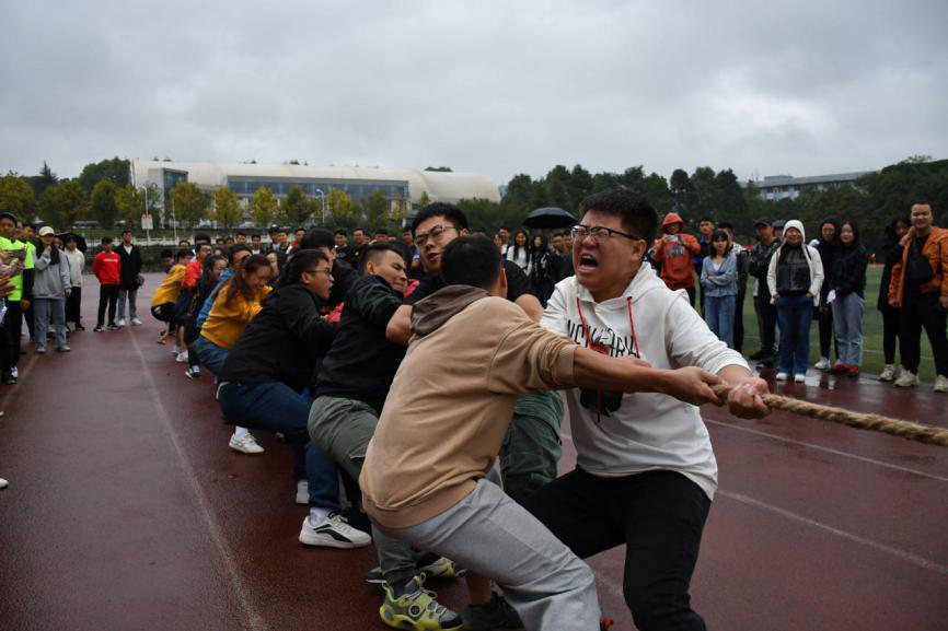 10月3日上午,激烈的“力拔千斤”拔河比赛如火如荼的展开,各学院参赛队员努力拼搏,无论是场上还是场下,气氛都异常紧张。必赢bwin官网19级刘志龙、尚朝阳、颜轶涵、杜荣伟、满佳雄五位本科生代表和张子鹏、王义等数十位研究生代表与旅游与文化学院的女同学们强强联手,在与生科学院的初赛中以极大的优势胜出,接下来在与农学院的半决赛中再获胜利,然而不幸在决赛中惜败于体育学院。但此次活动大大锻炼了必赢bwin官网的团结合作能力,展现队员们无所畏惧的体育精神和团结协作的奋斗精神。