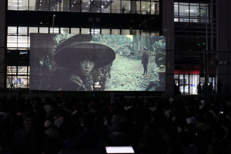 10月2日晚,学校在体育馆放映《八佰》、《蓝色防线》等爱国影片。宽大的屏幕上一幅幅刀光剑影的震撼场面,伴随着战争巨大的枪声炮响,深深撼动着同学们的心灵。