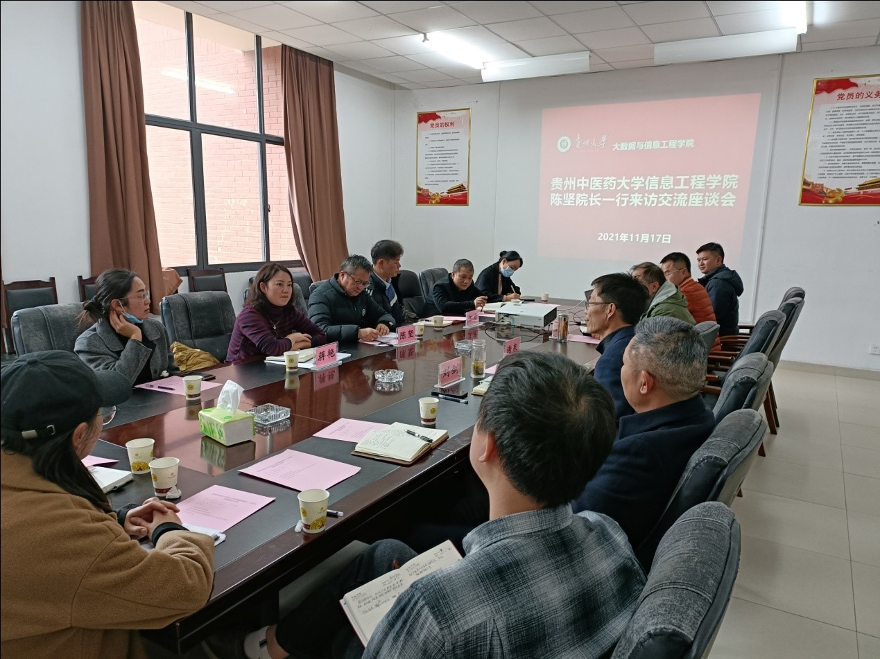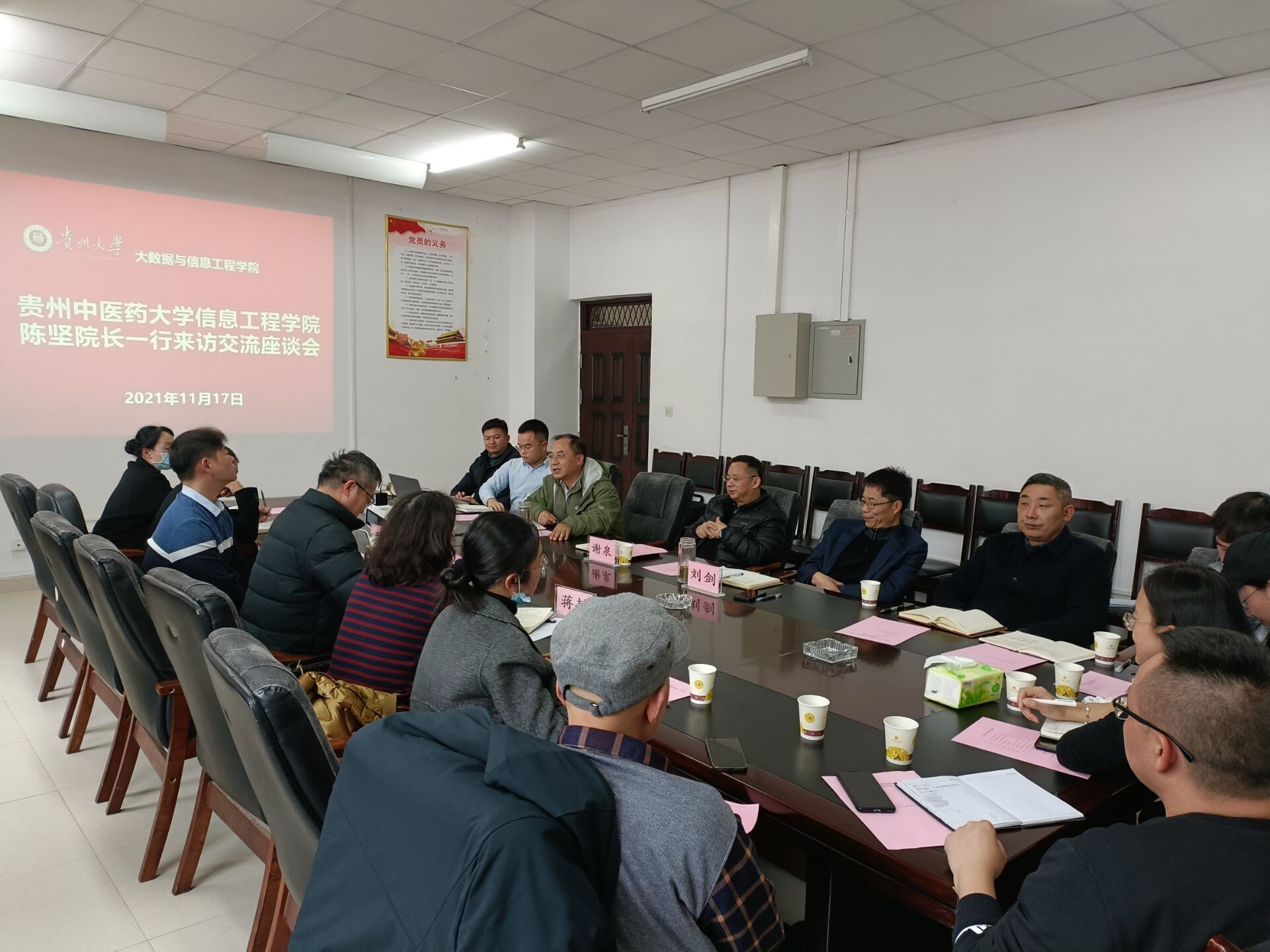 (党政办公室 供稿)11月17日下午,贵州中医药大学信息工程学院陈坚院长一行来必赢bwin官网进行考察交流,学院在崇理楼311会议室组织召开了交流座谈会。贵州中医药大学信息工程学院院长陈坚一行,必赢bwin官网班子成员以及各系系主任、教师代表参加了会议。会议由学院党委刘剑书记主持。