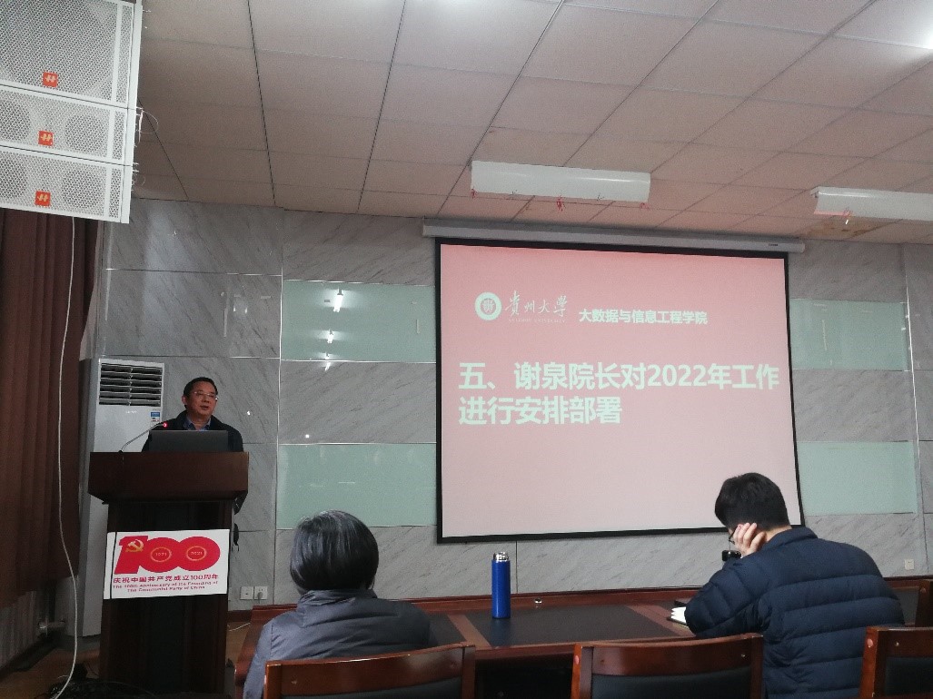 最后,学院党委刘剑书记总结讲话。刘剑书记指出:2022年是中国共产党第二十次全国代表大会召开之年,是全面建成小康社会、实现第一个百年奋斗目标之后,乘势而上开启全面建设社会主义现代化国家新征程、向第二个百年奋斗目标进军的关键之年,也是全面开启“做强必赢bwin线路检测中心”、推进新一轮“双一流”建设和迎接建校120周年华诞的重要之年。学院教职工要紧密围绕学校工作总体要求,抢抓新国发2号文件重大机遇,以习近平新时代中国特色社会主义思想为指导,坚决拥护“两个确立”,做到“两个维护”,深入落实立德树人根本任务,紧扣学校、学院重点工作,凝心聚力谋发展,为提升学校综合实力和核心竞争力,为推动贵州高质量发展贡献力量,以优异成绩迎接中国共产党第二十次全国代表大会和贵州省第十三次党代会胜利召开。