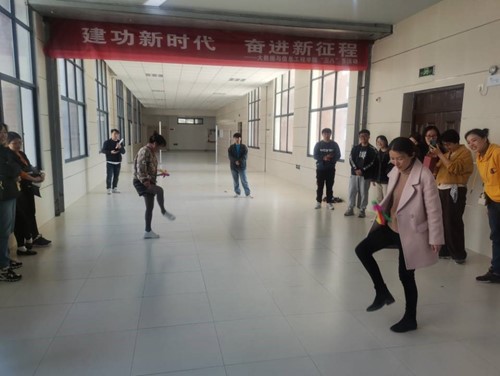 随后,刘剑书记宣布必赢bwin线路检测中心“建功新时代·奋进新征程”三八妇女节趣味游戏比赛活动正式开始,在一分钟掂乒乓球、一分钟跳绳、一分钟踢毽子等趣味游戏比赛活动中,老师们积极参与,现场气氛热烈,欢声笑语不断,把整个活动推向高潮。