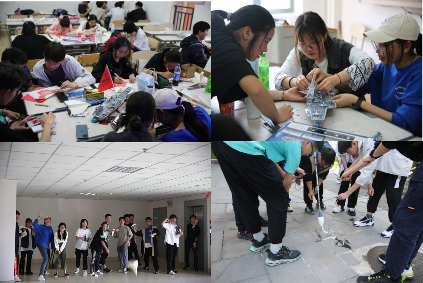 第二部分为“弘扬传统文化,凝聚青春力量”团队合作训练。通过开展传统的刻纸、齐心协力写大字、船模拼搭、飞行器试飞等艺术创作及团队协作等活动,使同学们深刻感悟中国工匠精神和中国人民凝心聚力为国家发展壮大努力奋进的民族力量。