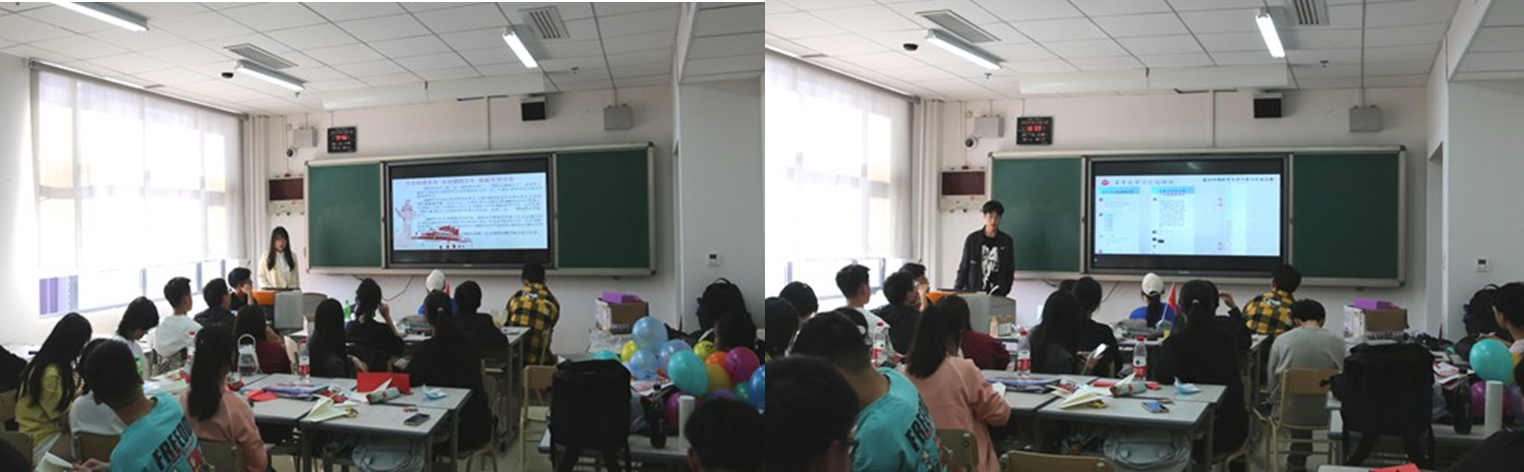 活动共分为三个部分,第一部分为“永远跟党走,奋进新征程”党团知识学习。该部分内容,首先由团支书刘鹏圣通报过去一个月同学们参加青年大学习的情况;接着,带领全体同学一起学习每一届全代会的核心思想,通过学习让同学们了解到国家日益富强、不断发展壮大的历程;随后举行了知识竞赛、“走进英雄人物你画我猜”等趣味性活动,在趣味性活动中融入党团知识和历史英雄人物,使同学们进一步凝聚起实现中华民族伟大复兴的强大信心和精神力量,奋进新征程、创造新业绩。