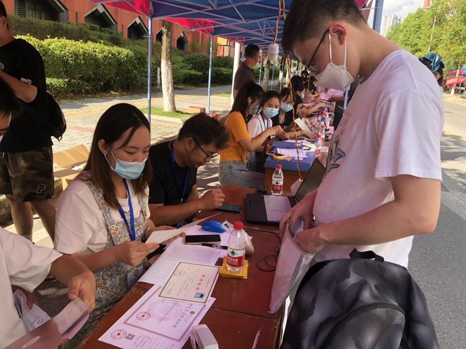 必赢bwin线路检测中心相关领导高度重视疫情防控下的研究生、博士生新生注册报道工作。学院党委书记刘剑来到迎新报到处指导工作,慰问迎新服务人员并与新生畅谈未来学习生活。