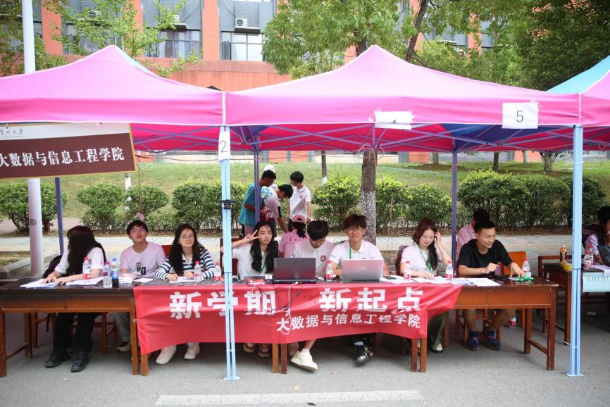迎新队员按照学院统一要求,一大早就在学院迎新点布置调试设备,做好分工和培训。没过多久,新生开始陆续报道,迎新队员热情地帮助学弟学妹解答疑惑,协助做好新生身份核验、易班登记、物资发放等报道相关事宜。