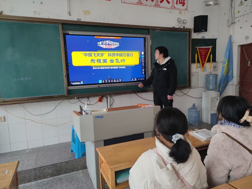 (必赢bwin线路检测中心 邓廷友 报道|摄影 邓廷友)为向青少年们普及中国航天知识,激发青少年探索航天的好奇心,引导他们从小热爱科技,提高创新能力与动手能力。大数据与信息工程院“逐梦飞天”航空航天科普队伍赴贵州黔西幸福社区于2023年2月9日举行航空航天科普讲座。本次科普通过讲座的形式开展,全场气氛热烈,共有200人积极参与。