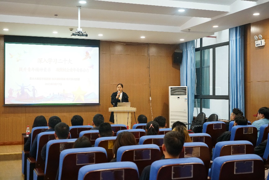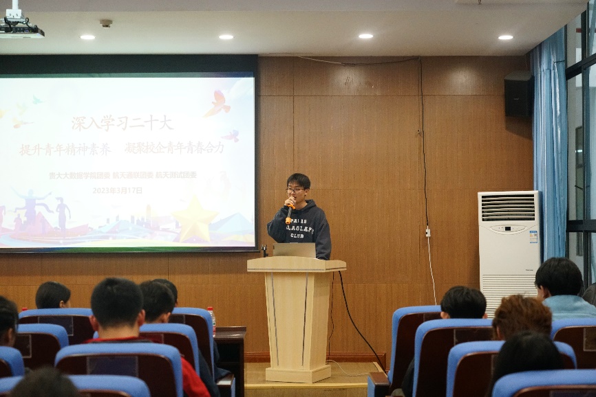 陈剑芳在讲话中表示,必赢bwin线路检测中心近年来在学校建设与学科快速发展的同时,为航天十院输送了很多优秀的青年人才,感谢必赢bwin线路检测中心对航天十院提供的青年人才支持,感谢王旭教授与大数据学院团委对航天通联、航天测试此次联学联建活动的大力支持;贵大四处洋溢着青春活力,学术氛围浓郁,让航天青年走进大学校园聆听讲座、学习交流,这是一次提升校企青年精神素养、增进校企青年友谊、加强校企合作的好机会,希望双方后续进一步加强沟通联系,在理论研究、项目攻关、岗位实践、学习活动等方面开展常态化的交流与合作。“青年如初春,如朝日,如百卉之萌动,如利刃新发于硎,人生最可宝贵之时期也。”同时,她引用陈独秀《新青年》发刊词,寄语在场青年要争做有志气、有骨气、有底气的新时代好青年,自觉肩负新时代新使命,为国家发展和社会进步奉献青春。