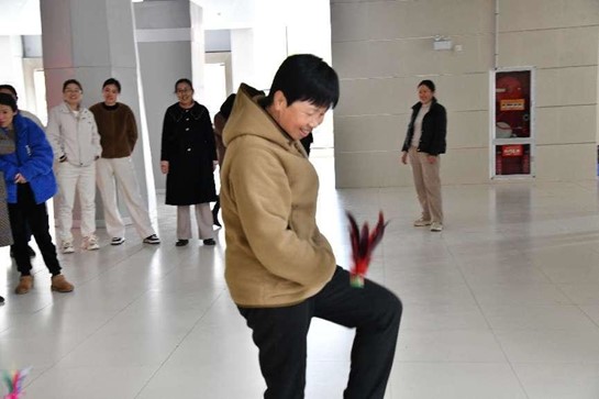 随后,陈勇书记宣布活动正式开始。本次趣味活动共设有三个项目:双龙戏珠、接力运球、踢毽子。主持人讲解完活动规则后,老师们便积极组队热烈地参与进趣味活动中来。活动过程中,老师们奋勇拼搏,力争为自己的团队赢得比赛,真正彰显了巾帼勇逐梦的精神。